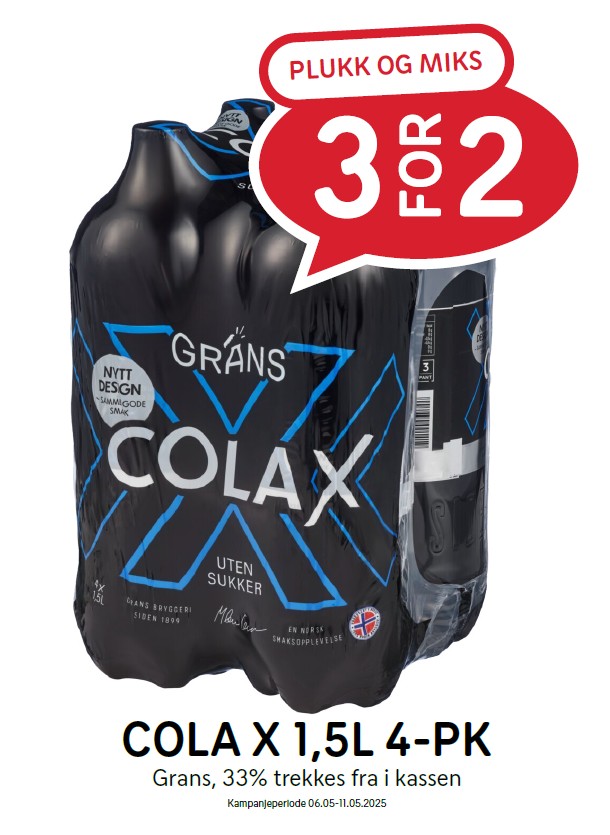 Grans Cola X 1,5L 4pk – 3 pakker for prisen av 2
